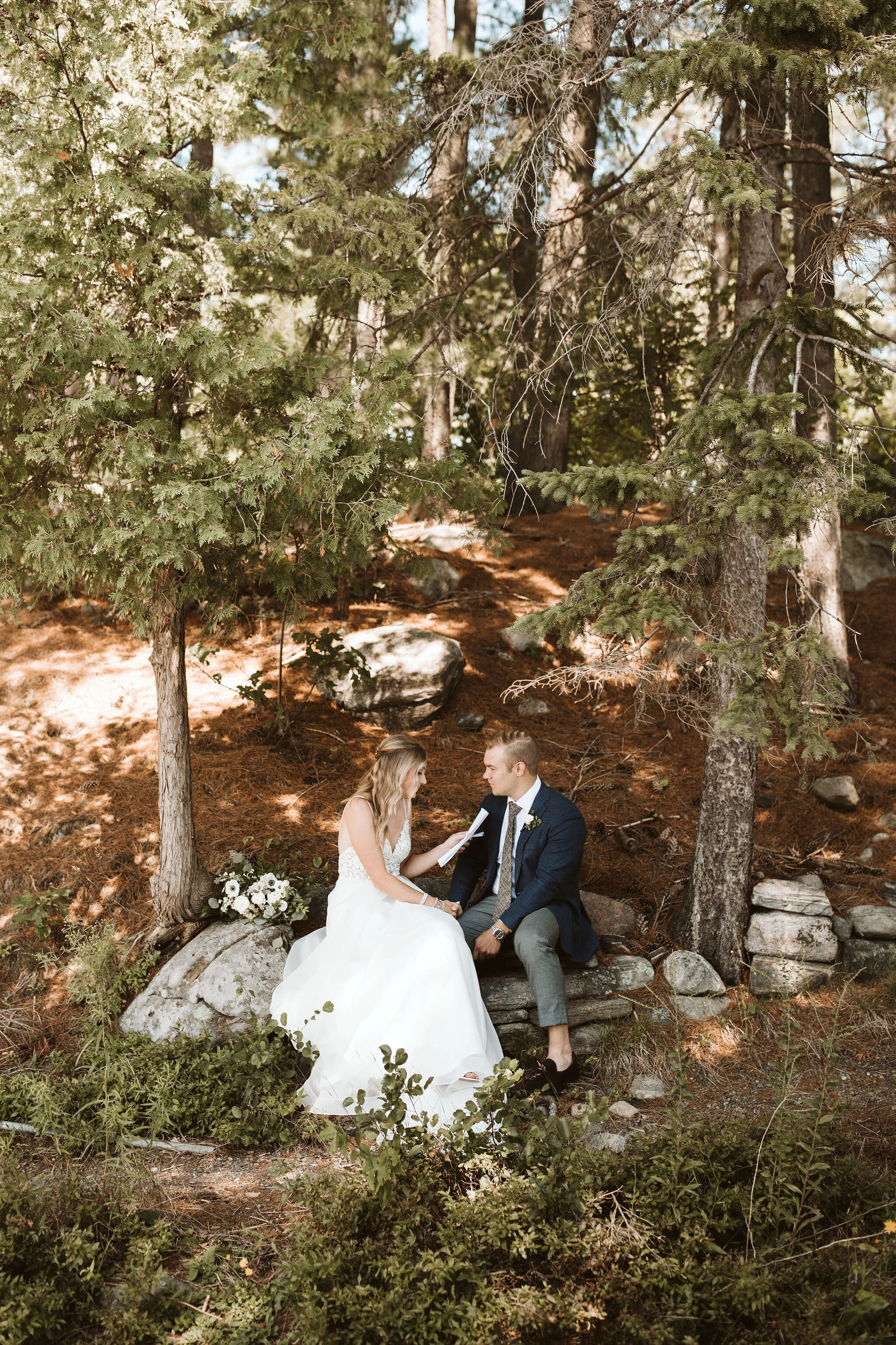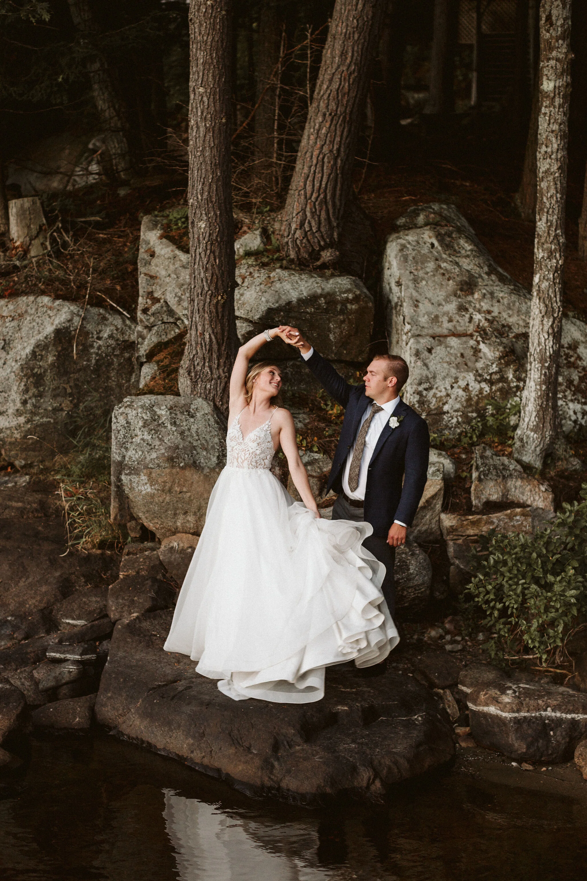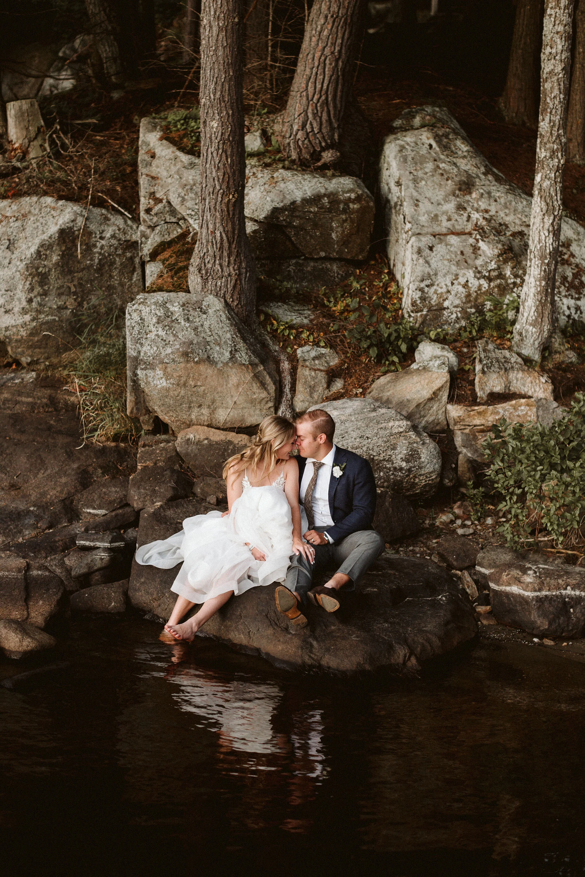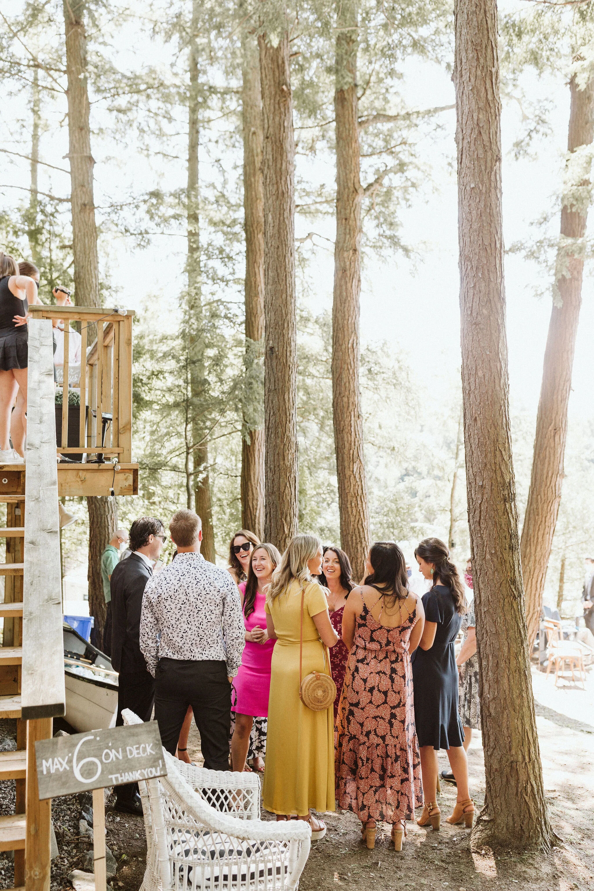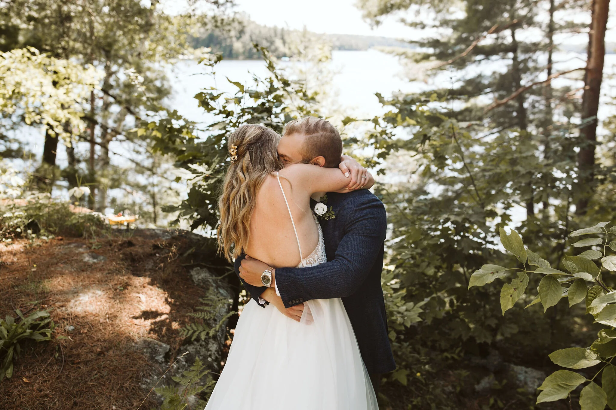 The wedding day was full of smiles, laughter, and blue skies! A larger group of guests were invited to the lakeside ceremony, followed by a laid-back reception. You know - the beer-filled canoes, Muskoka chairs and tunes kind of laid back! Guests departed shortly after to allow the bride & groom a chance to dine safely with their parents, grandparents, and siblings.