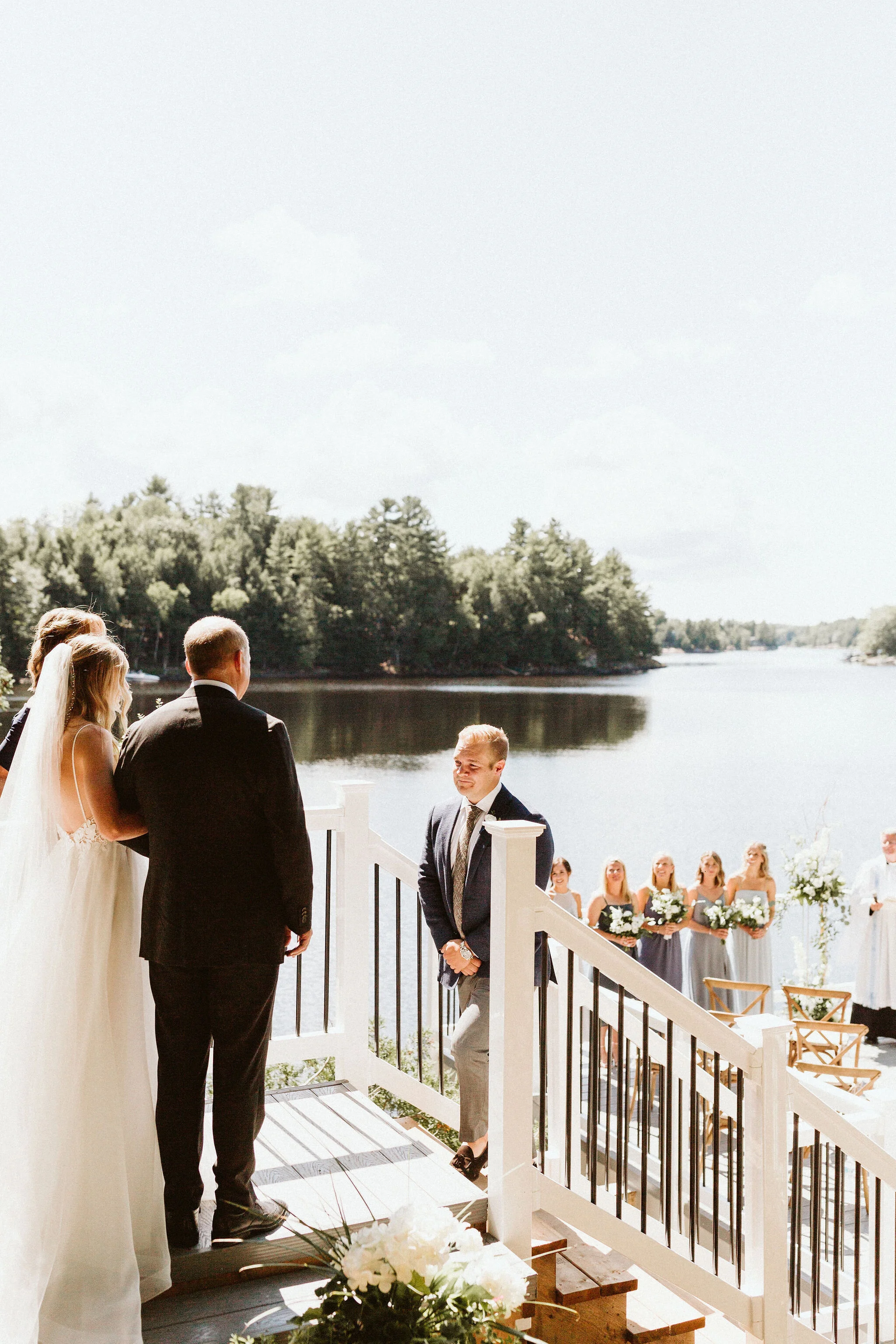 I met with Allison and Jordon, along with immediate family at their stunning Port Carling cottage just a few short weeks before the big day. I fell in love with the location the second I stepped onto the property. You can’t help but be drawn into a setting like this, with jaw-dropping views from every angle. At the base of their cottage was a boathouse roof offering the clearest of views and without a doubt a stellar backdrop of Lake Muskoka for their cottage inspired nuptials.