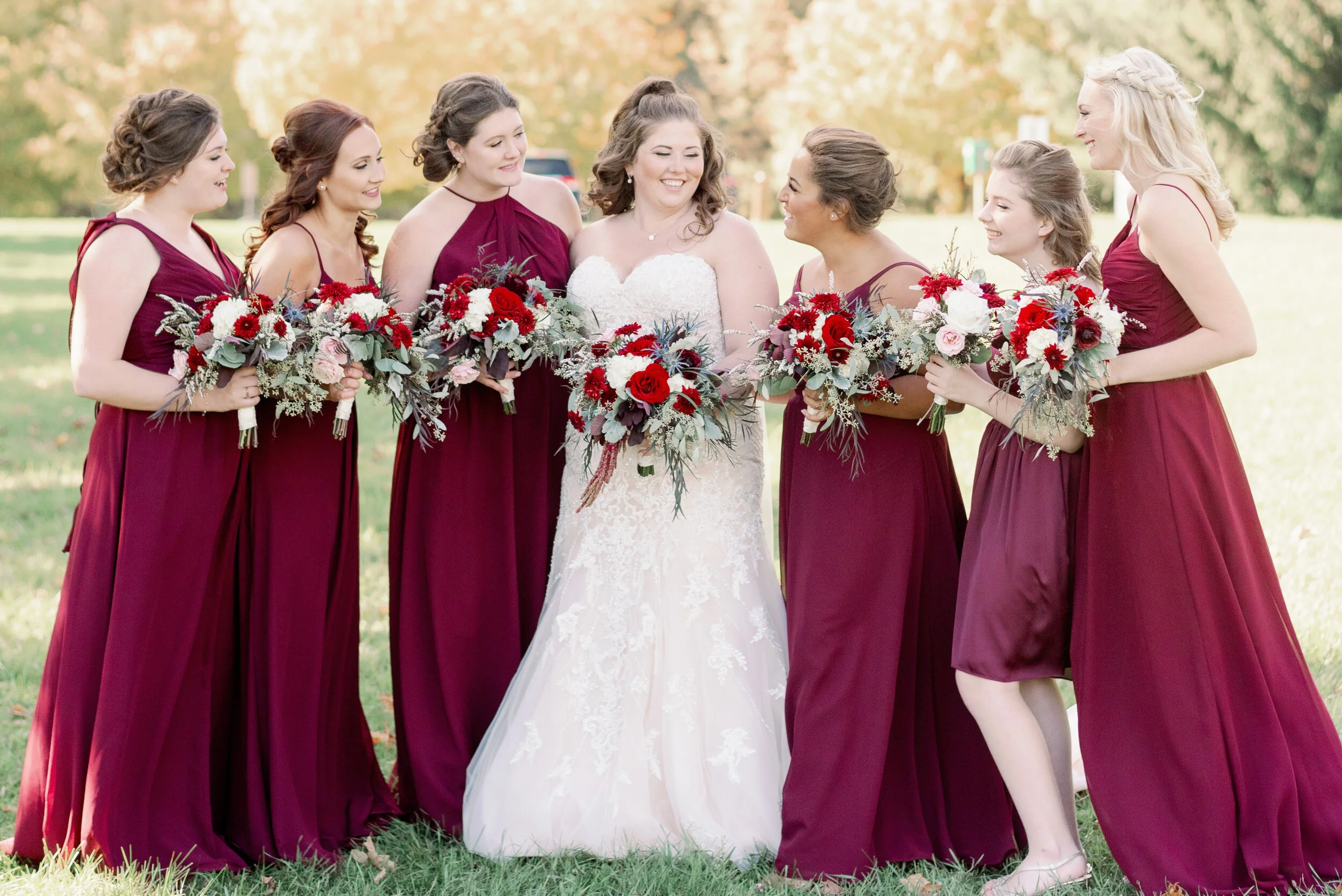 The outdoor ceremony setting for this Autumn wedding was cozy and intimate. Letting nature itself provide the backdrop, the décor was kept simple, thus keeping the focus on Amber and Stuart. The bridal party was sung down the aisle to the incredible vocals of James Cameron. The fruits of this long-awaited moment were fully evident, witnessed most notably in their beautiful, personalized vows.