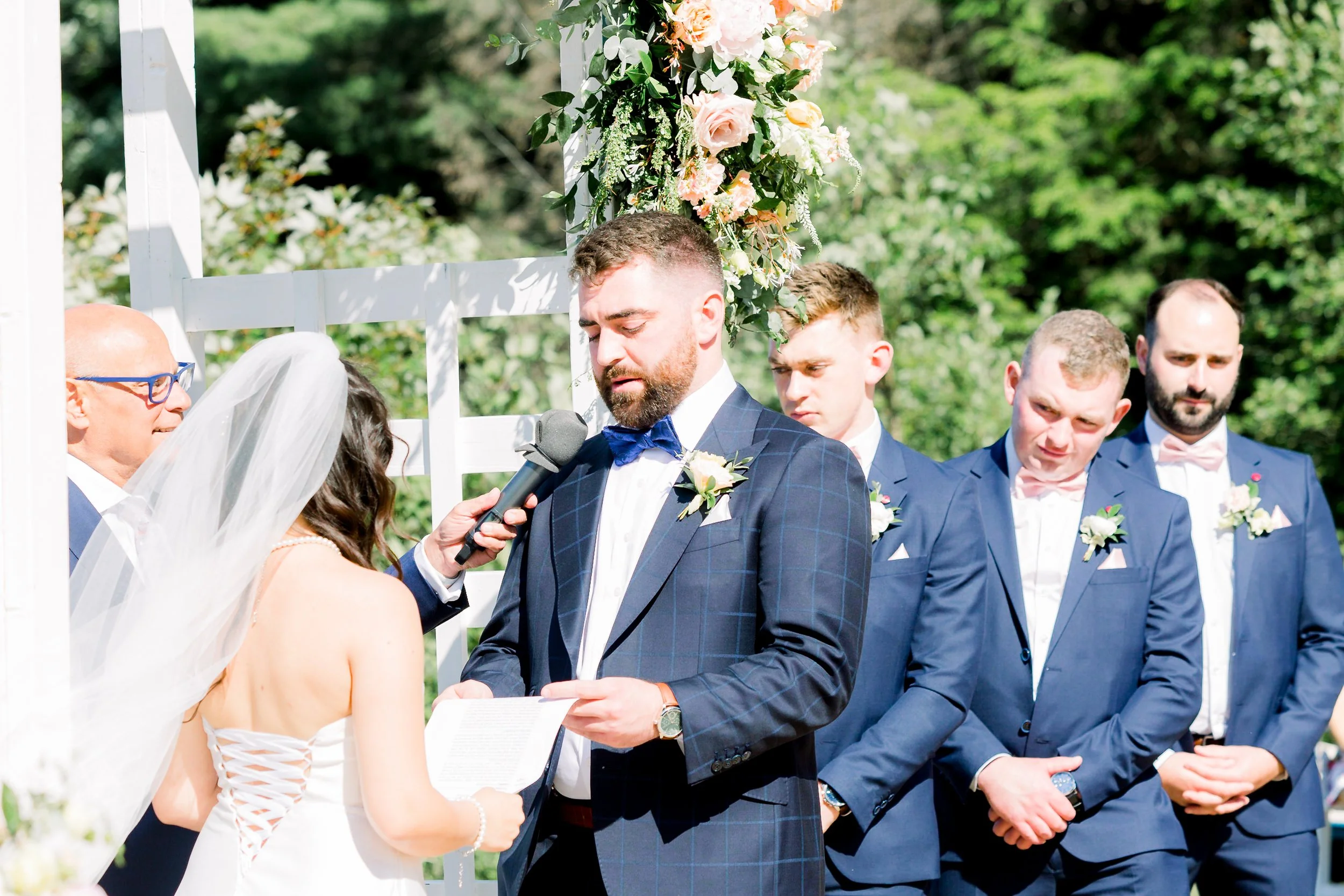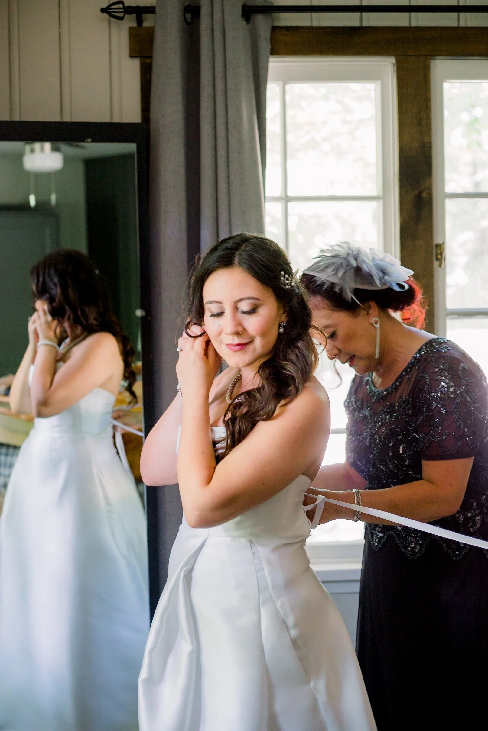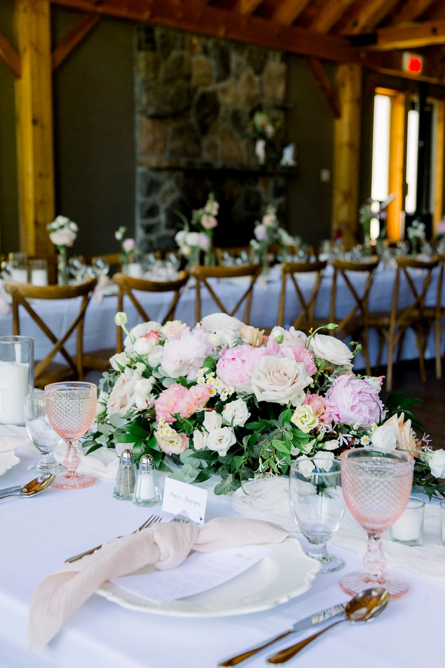Guests would start things off with check-in, little customized greeting bags including the weekend essentials (pro tip: adding an itinerary and map to this ensures guests know exactly when and where to be). A welcome bbq would then kick off the festivities, allowing everyone to get to know one another before tomorrow’s celebrations. Wedding day was finally here, and while Cata and her girls could get ready onsite, guests were off enjoying the amenities of the resort and of course, the most serene, private lake with 360 degree views of iconic Canadian trees. Not for too long though, while the bride & groom opted for a first look, the venue team (myself included) looked to clear the beach for the couple’s mid afternoon ceremony offering the most idyllic skies and scenic backdrop for their I do’s.