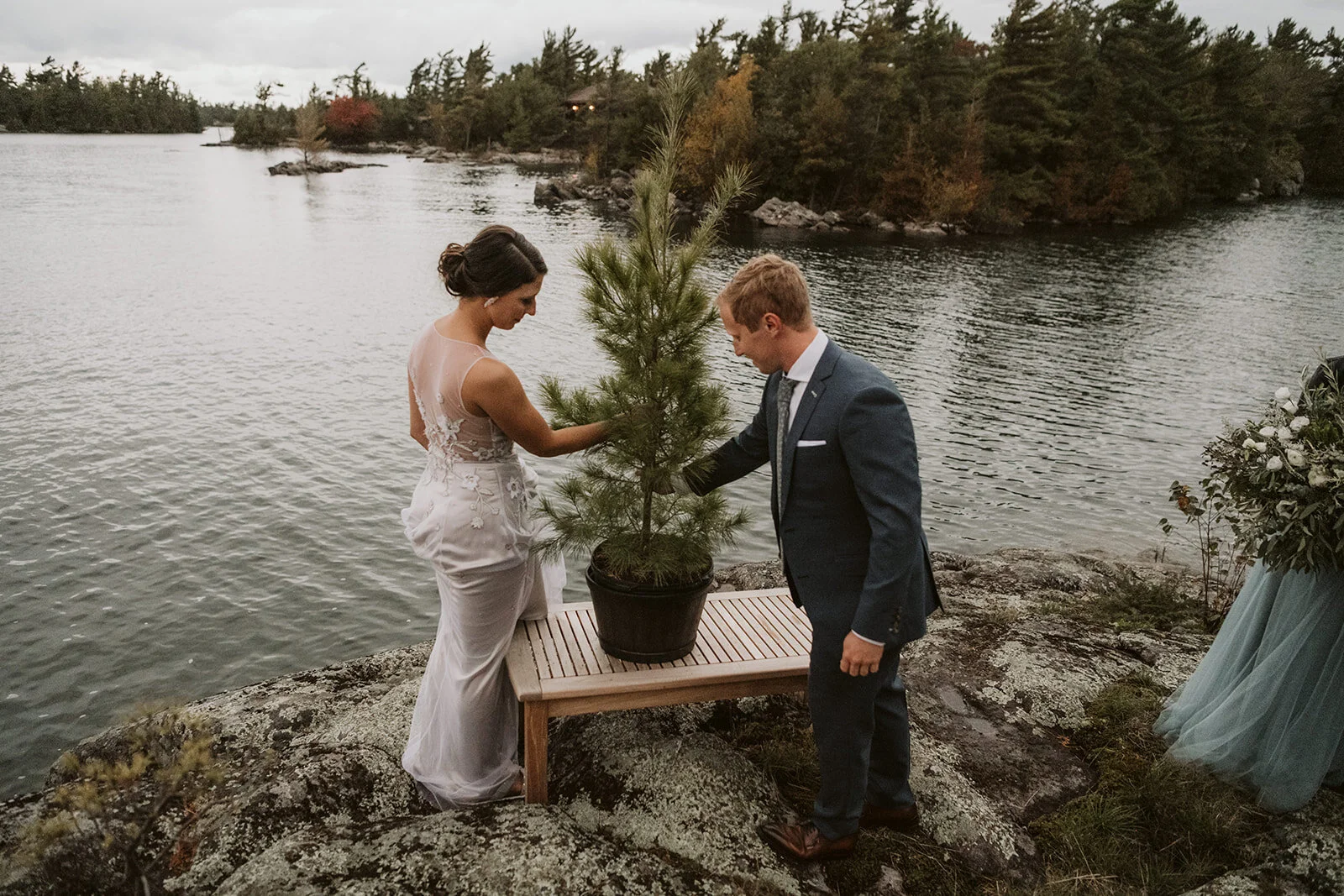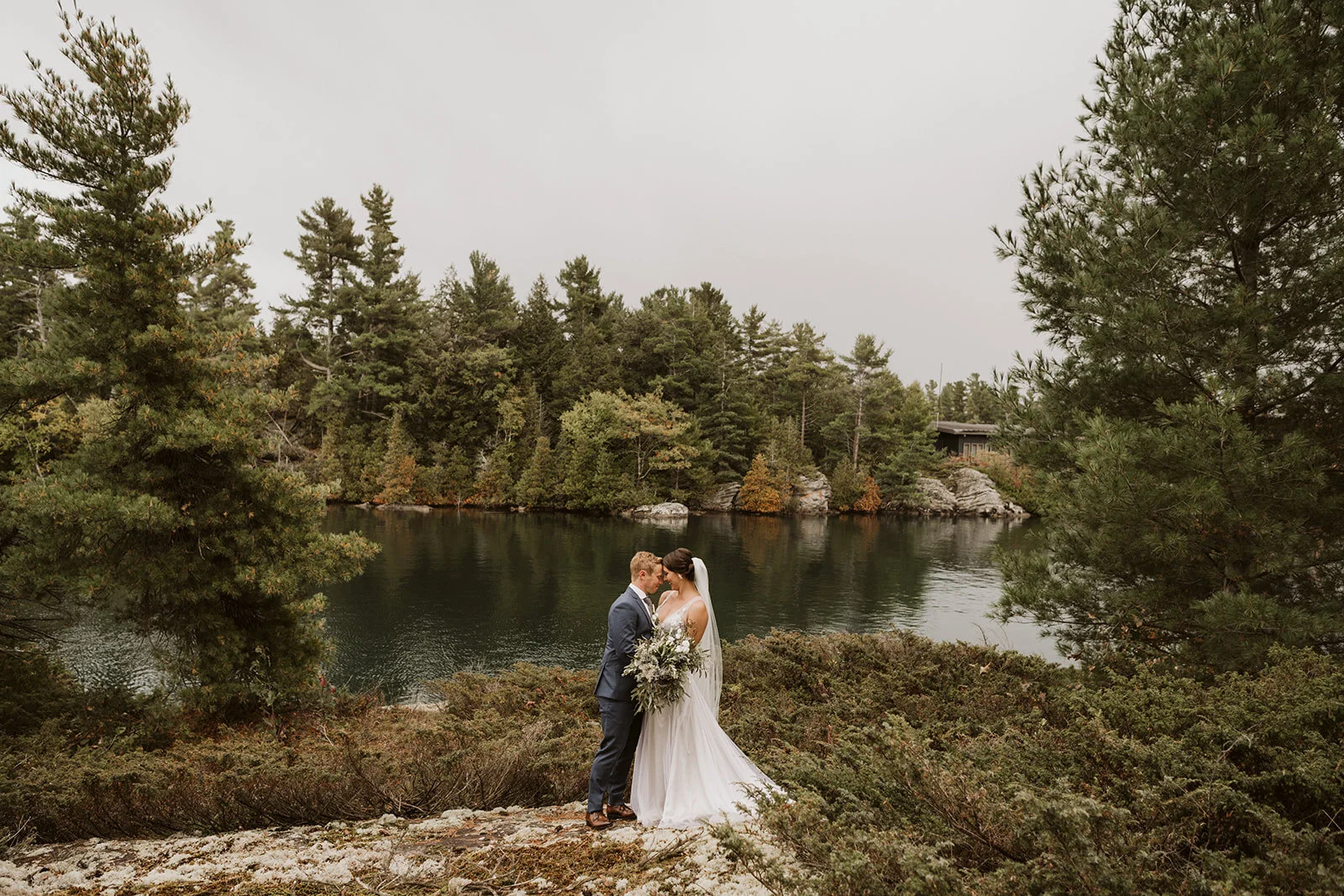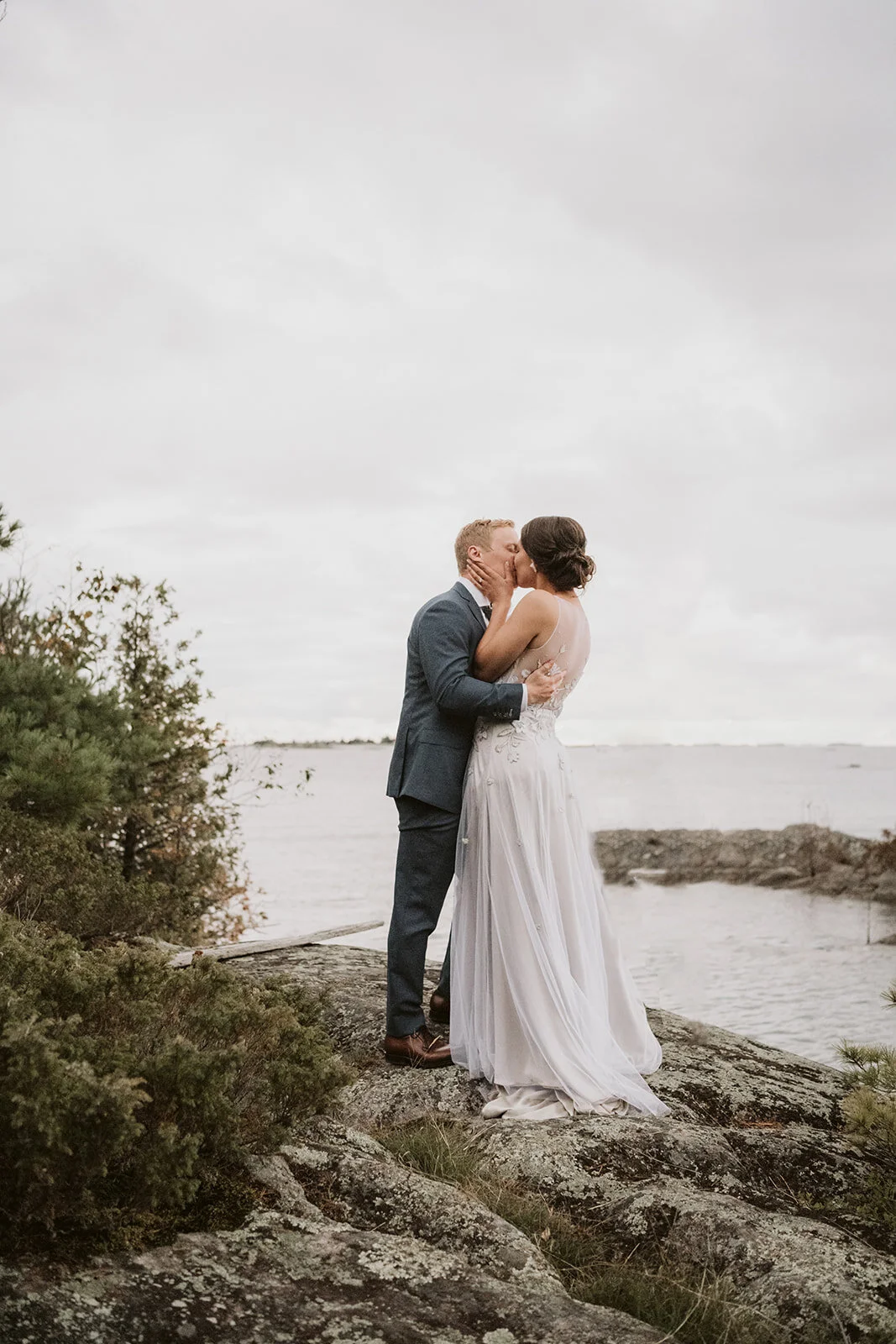 When Hayley & Matt purchased Daisy Island in July, there was never the intention to have their wedding at it. SO many moving parts, logistical factors (segway to where I come in), not to mention a 45-minute boat ride to the mainland… was it even possible? Like all good decisions, accompanied by a glass of wine, the two headed to their favourite spot on the Island - An evening routine if you will. A rocks edge with jaw dropping views of a Georgian Bay sunset (one in which would play a significant role in their wedding day)… the answer was right infront of them. Although it seemed like a tall order, the idea grew on them and before they knew it, 25 of their nearest and dearest would soon be receiving their cottage wedding invite!