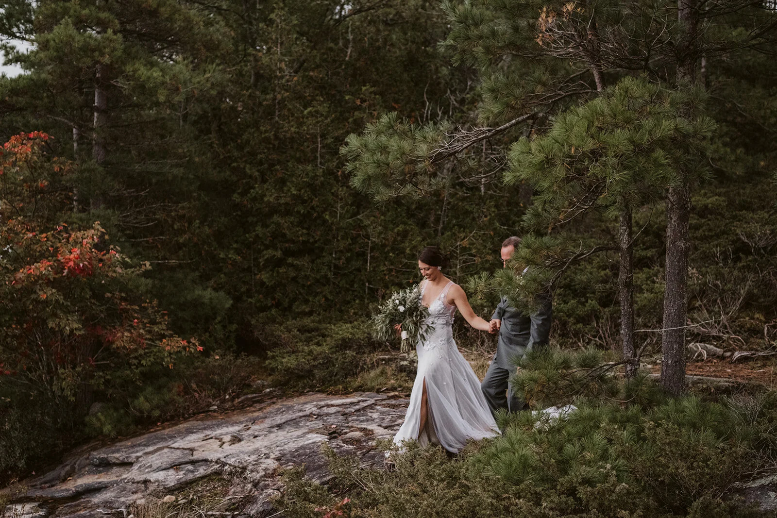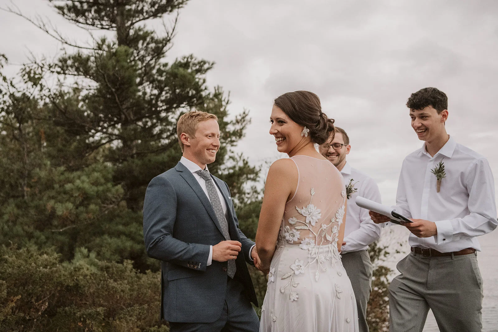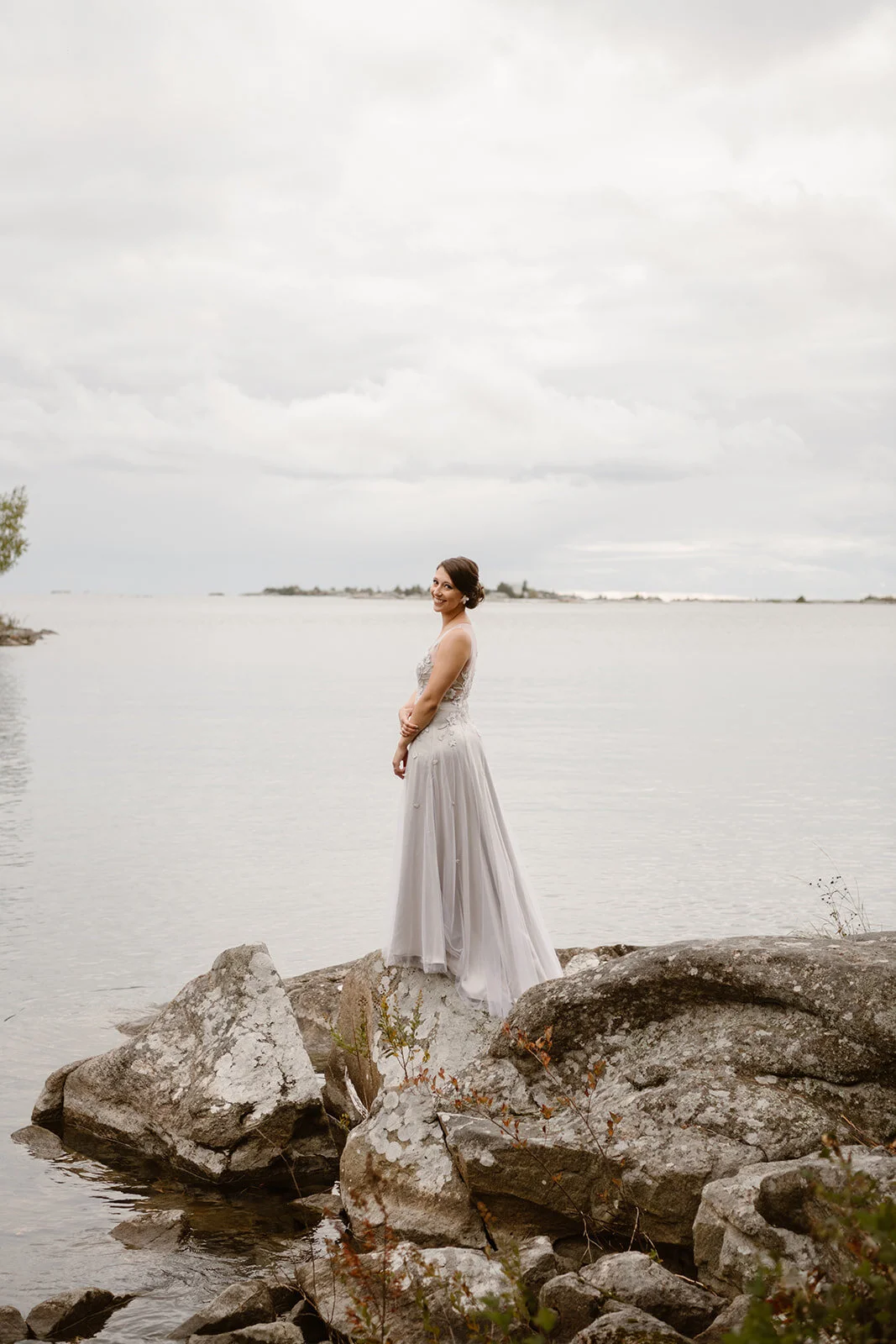 When Hayley & Matt purchased Daisy Island in July, there was never the intention to have their wedding at it. SO many moving parts, logistical factors (segway to where I come in), not to mention a 45-minute boat ride to the mainland… was it even possible? Like all good decisions, accompanied by a glass of wine, the two headed to their favourite spot on the Island - An evening routine if you will. A rocks edge with jaw dropping views of a Georgian Bay sunset (one in which would play a significant role in their wedding day)… the answer was right infront of them. Although it seemed like a tall order, the idea grew on them and before they knew it, 25 of their nearest and dearest would soon be receiving their cottage wedding invite!